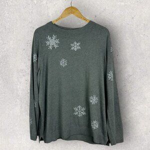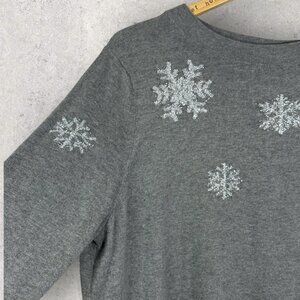 Talbots Cashmere Blend Snowflake Grey Knit Sweater Size XL Pullover Crew Neck