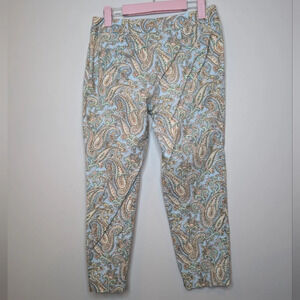 Talbots Chatham Blue Paisley Patterned Slim Leg Cropped Petite Pant 4P