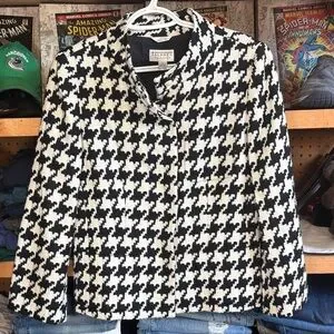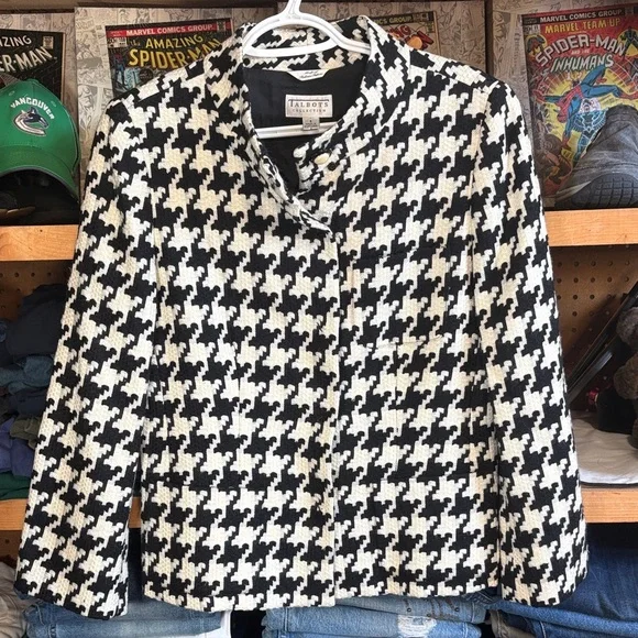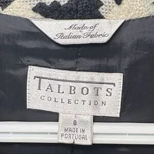 Talbots Collection Wool Cashmere blazer with classic houndstooth pattern. Perfect for professional or casual wear. Made in Portugal.