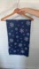 Soft to touch! A Perfect accessory for this winter! Snowflake motif. Wide and long scarf but not a bulky material. Lightly fringed. Blue with grey snowflakes on one side and grey/blue with blue snowflakes on the other creating a pretty contrast wrapped around your neck.
