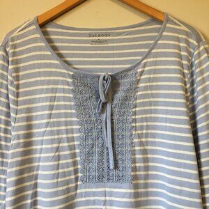 Talbots Cotton Modal Stripes & Lace Tie Up Top