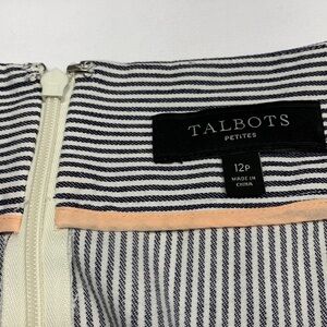 Talbots Cotton Skirt Striped Size 12P Grey and White Stripes