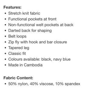 Talbots Dress Pants Womens 12 32x30 Black Nylon Tapered Office Trousers