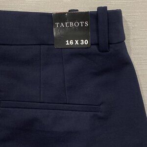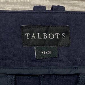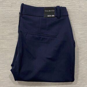 Talbots Dress Pants Womens 16 34x30 Navy Blue Nylon Tapered Trousers Office