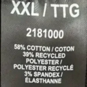 58% cotton | 39% recycled polyester | 3% spandex.