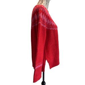 Talbots Fair Isle Sweater, Red & Pink, Relaxed fit, petite L, skiing, wool blend