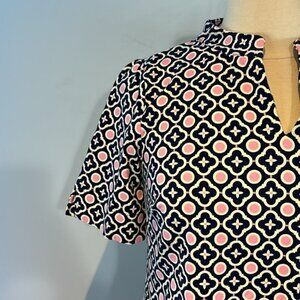Talbots GEO-PRINT MOCKNECK KNIT SHIFT DRESS pink/navy size petite medium
