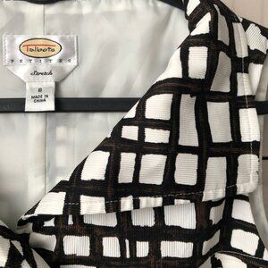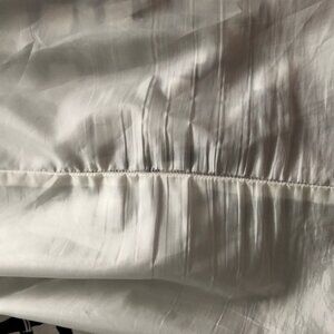 Beautiful style. Material has some stretch to it. Material is textured. Lined. The lining near the bottom of the dress is a little worn (photo provided).