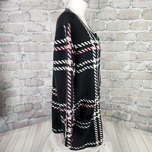 Talbots Herringbone Plaid Scoop Neck Snap Front Black Cream Pink Size 3X