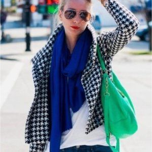 Talbots Jacket Houndstooth Moto Zipper Wool Blend Black White Size 12
