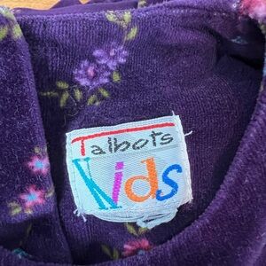Talbots Kids vintage dress. Velour material. Purple with an all over floral pattern print. Buttons on the back for closure.