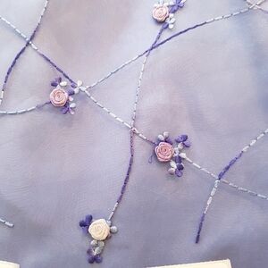 Talbots Kids size 8 girl's light blue dress, top layer is light sheer with flowers and design stitched on under layer solid blue, lining light blue as well, back has zipper