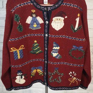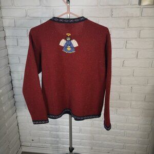 Talbots Ladies Size 8 Button Front Alpine Poppy 100% Lambswool Christmas Sweater
