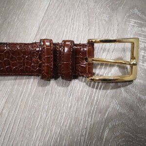 Talbots Ladies Size Small Brown Leather Crocodile Embossed Pattern Belt