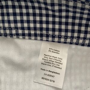 Cotton and spandex shorts in a black and white check. 10.5 inch length.