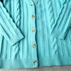 Talbots Light Blue Wool Blend Stretchy Cable Knit Cardigan
