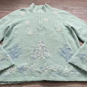Talbots | Light blue wool blend embroidery and beaded sweater