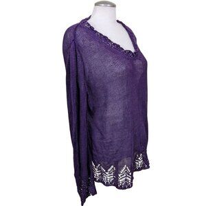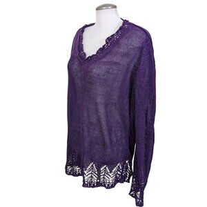 Talbots Linen Open Knit Top Womens XL Deep Plum Purple Sweater Made In Italy