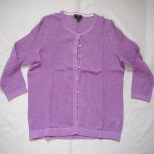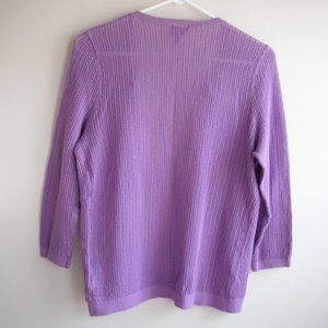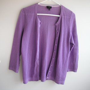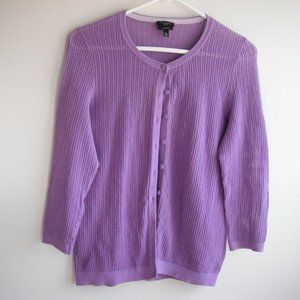 Talbots MP Button Front Sweater Cardigan Light Purple 100%Pima Cotton 3/4 Sleeve