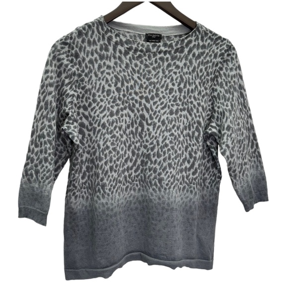Talbots Merino Wool Grey Animal Print Pullover Sweater