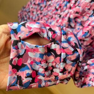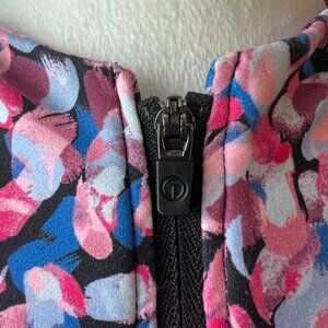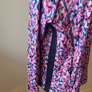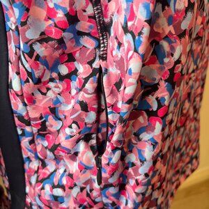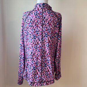 Love a touch of color? This T by Talbots long-sleeve active pullover is a must-have! The eye-catching pink, blue, black, and white palette makes it easy to pair with your favorite leggings or jeans. Features a practical 1/4 zip and two front slash pockets. Size XL. Great for layering and on-the-go style.
