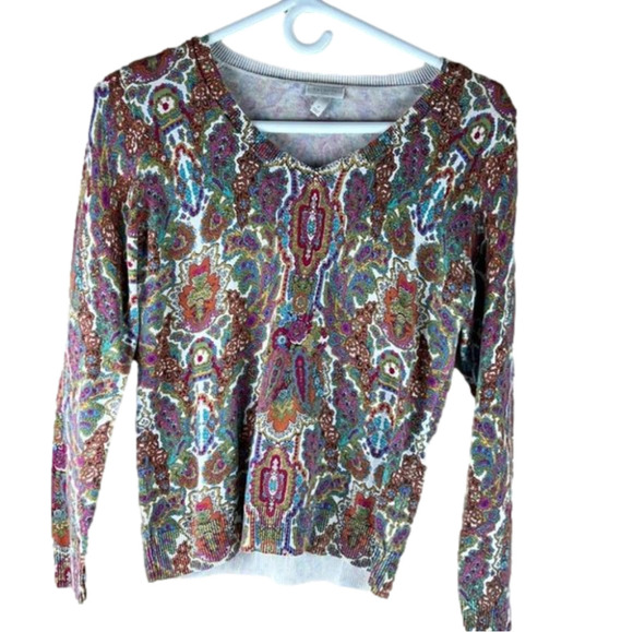 Talbots Multicolour Paisley Petite V-Neck Sweater Small