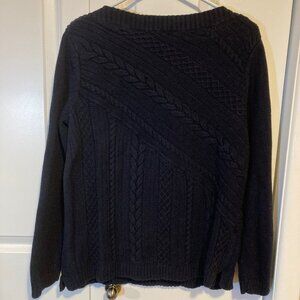 Talbots Navy Blue 100% Cotton Sweater, Size XL — a classic cable-knit design with a flattering boat neckline and long sleeves. Features small side slits at the hem for added comfort and style. A beautiful, timeless sweater that’s perfect for any season.