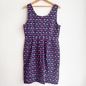 Talbots Navy Blue Pink Floral Sheath Dress Sleeveless 14.