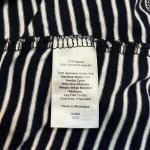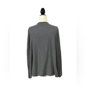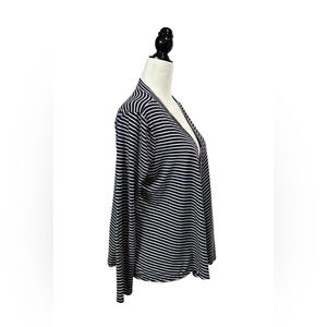 This Talbots cardigan boasts a chic navy and white striped pattern, perfect for adding a touch of sophistication to any outfit. The open front design offers versatility, making it an excellent layering piece for both casual and formal occasions.