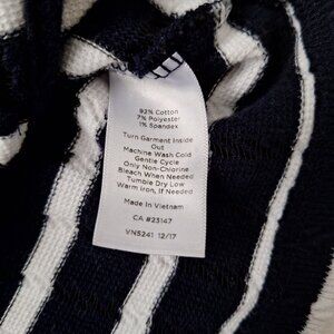 Talbots Navy and White Striped Cotton Zip Up Cardigan