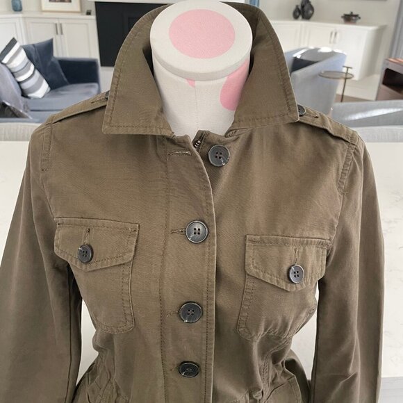 Talbots Petite Casual Military Inspired 100% Cotton Jacket Olive Green Sz P