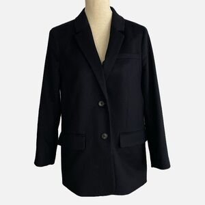 Talbots Petite Long Wool Blend Blazer Size 12P Brushed Wool Navy Blue Classic