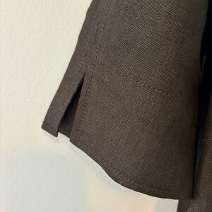Elevate your wardrobe with this timeless black coat from Talbots Petites. Crafted from 100% pure Irish linen, this classic-fit piece features an open front with hidden button closure, vertical slit pockets, and flattering 3/4 length sleeves with subtle vent detailing. Perfect for layering in spring or early fall. Size Medium (Petite). Made in Thailand. Dry clean only.