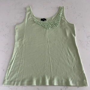 Talbots Petites 100% Pima Cotton Tank Top w Neck Design Element Mint Green Sz MP