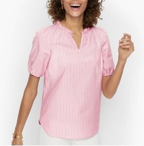 Talbots Pink Puff Sleeve Blouse with Frill Collar-Size M Petite New With Tag