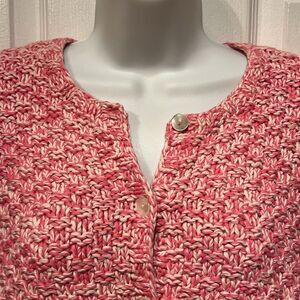 Talbots Pink/White Hand Knit Cotton Cardigan Sweater Size M