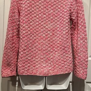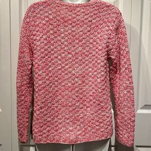 Talbots Pink/White Hand Knit Cotton Cardigan Sweater Size M