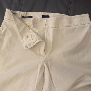 Talbots Chatham Slim Ankle on solid Gypsom Beige. In cotton bi-stretch for a flattering fit, lift, comfort and versatility. Elastic insets for ease. Curvy Fit is specially designed for women whose waist is proportionately smaller than their hips.