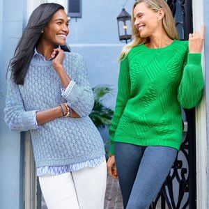 feel-good crewneck sweater in a standout marled knit. Airy pointelle details goes easily from season to season.
