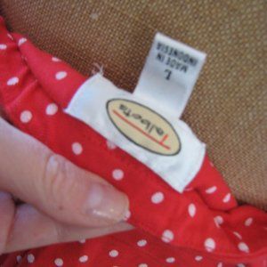 Ties at neck, has built in shelf bra with covered elastic band around the back. Shaped fit, stretchy material, falls above the knee.