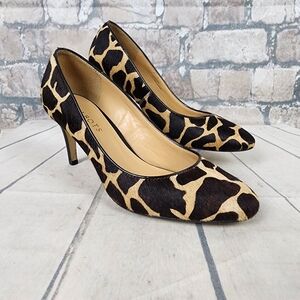 Talbots Pump Heels Giraffe Print Calf Hair Leather Tan Black Size 6.5