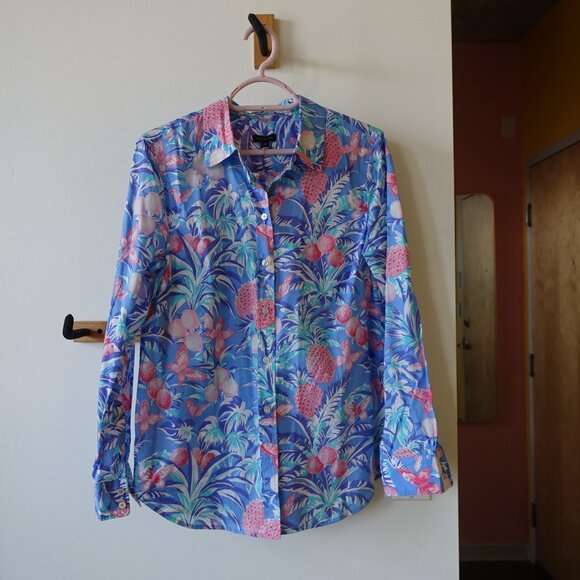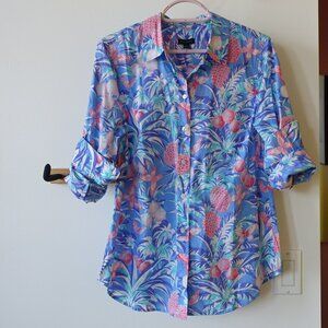 Talbots Ratti Cotton Tropical Lychee pineapple button down shirt S Small SM