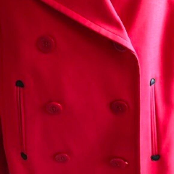 Spring is here with Talbot's Red Double Breasted Jacket! Interesting detail on cuffs, big collar and slit pockets. Nice vent detail at the back. 95% Cotton/5% spandex, Size 8, EUC