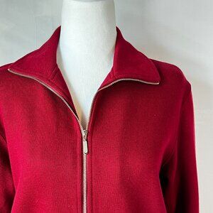 This elegant and high-quality Talbots sweater offers classic style with a versatile, casual feel. Made from 100% cotton, this full-zip sweater in a vibrant red is soft, breathable, and perfect for year-round wear.