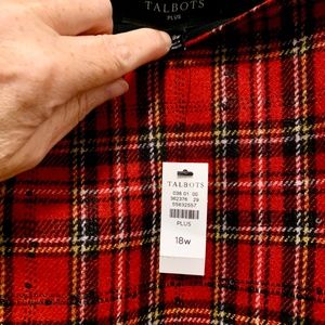 Talbots Red Wool Tartan Plaid Pencil Skirt 18W - NWT