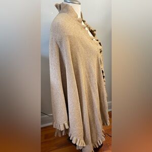 Talbots Ruana Ruffled Wool Shawl/Wrap in Camel