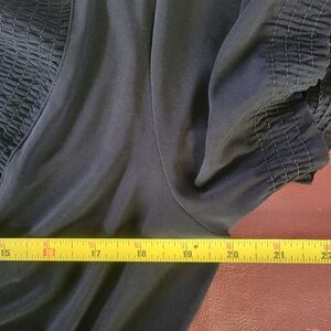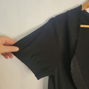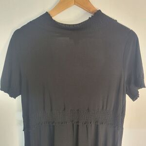 This simple black dress is a great wardrobe basic, suitable for dressing up or down, but fair warning the floppy band of ruching collar makes for a pretty loose neckline so it's not really suited to smaller chest sizes. Im a B cup and it was too gaping on me. GUC