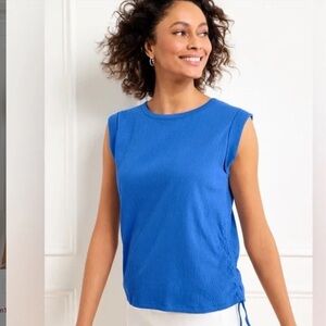 Elevate your wardrobe with this chic blue sleeveless top. Perfect for any occasion, it offers both style and comfort.