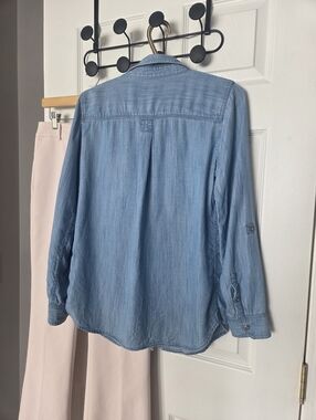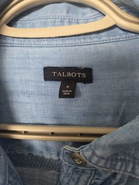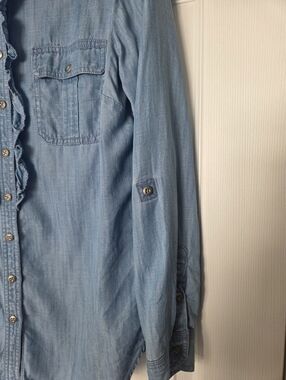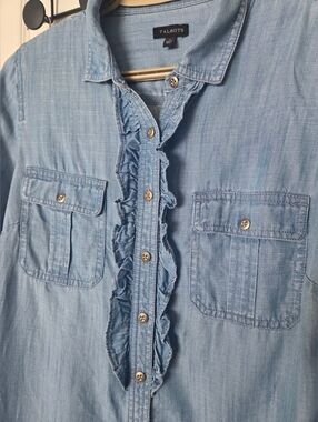 Talbots Lyocell Denim Chambray Long Sleeve Button Front Ruffle Detail Shirt Top