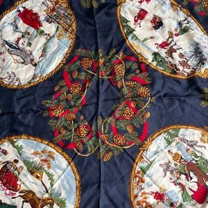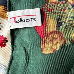 Talbot's Scarf Christmas Scenes Hand Rolled Stitched Edge Silk Japan Green